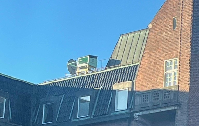 Det är företaget Castellum som monterat en bolåda avsedd för berguv på taket vid gamla Televerkshuset (bakom Nikolaikyrkan).